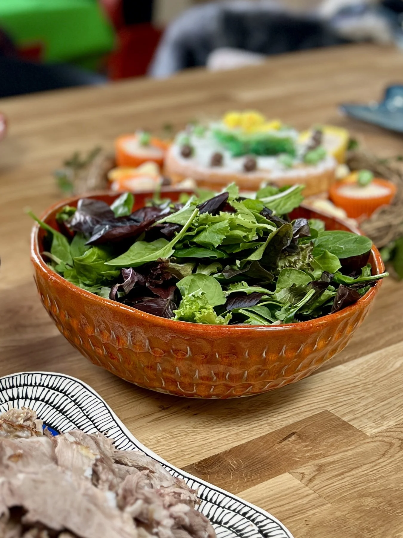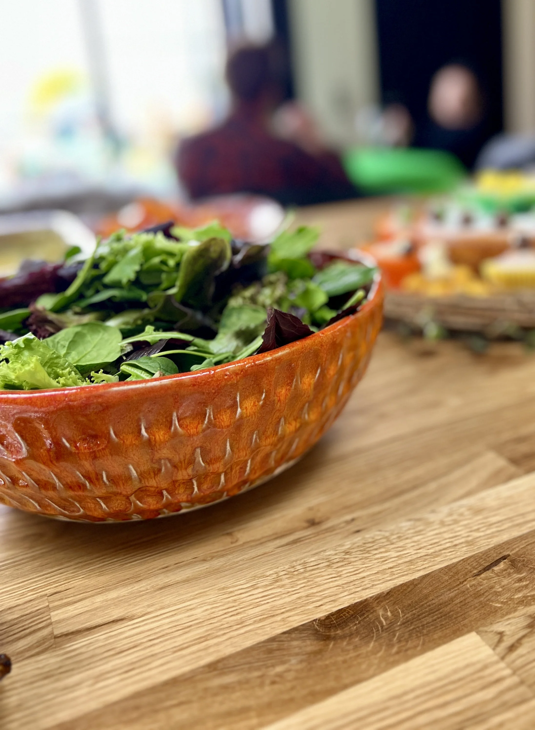 A painted earthenware serving dish that looks amazing on it own on display! Now available in Blue!