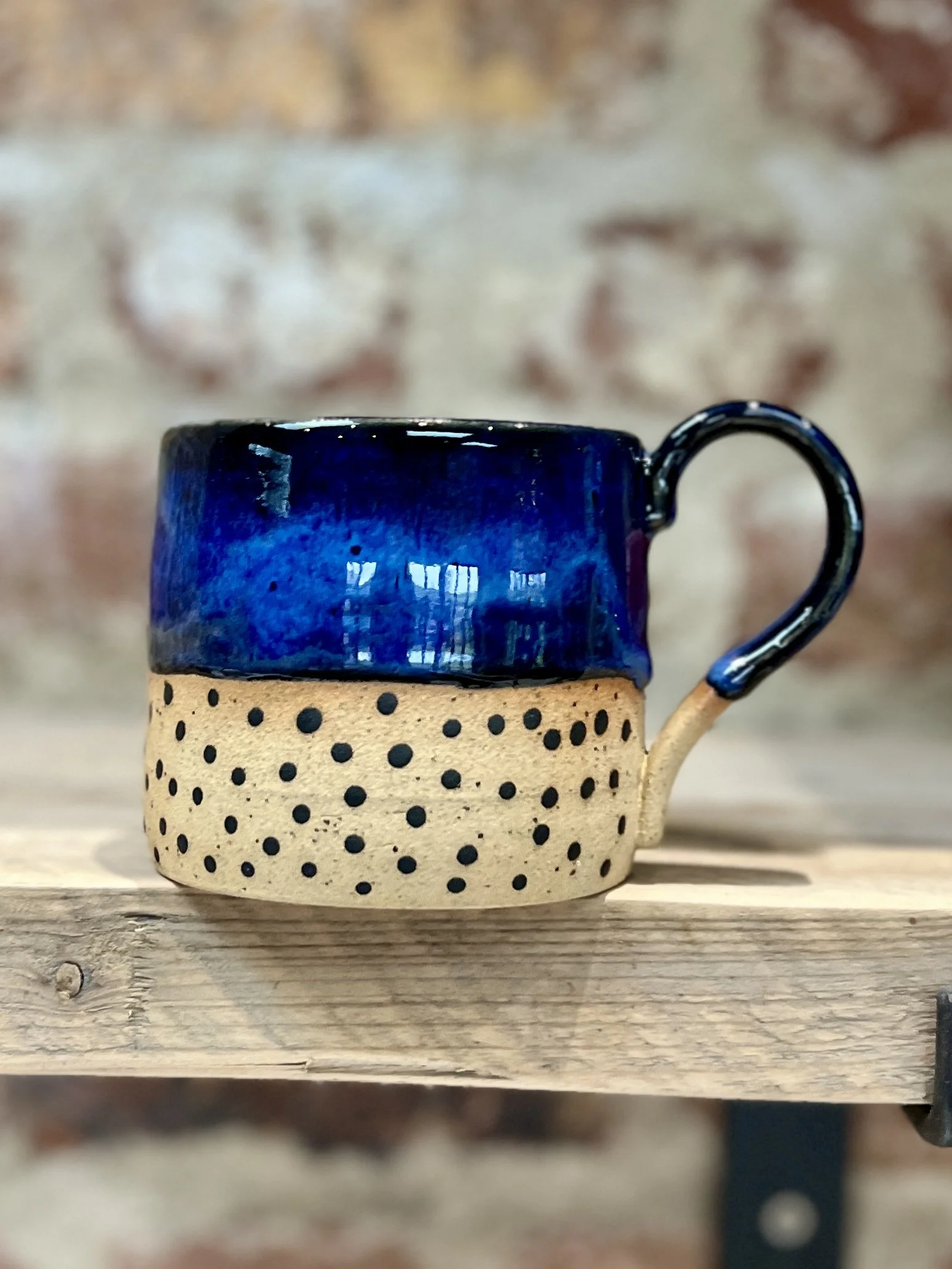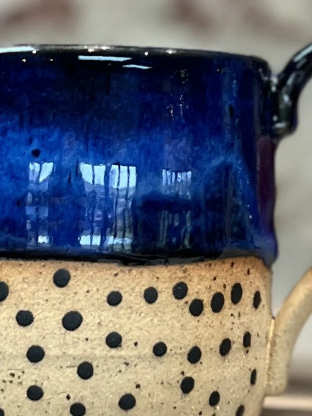 Wheel thrown with white stoneware. Glazed in a combination of 2 glazes, the lime green really pops on this mug.